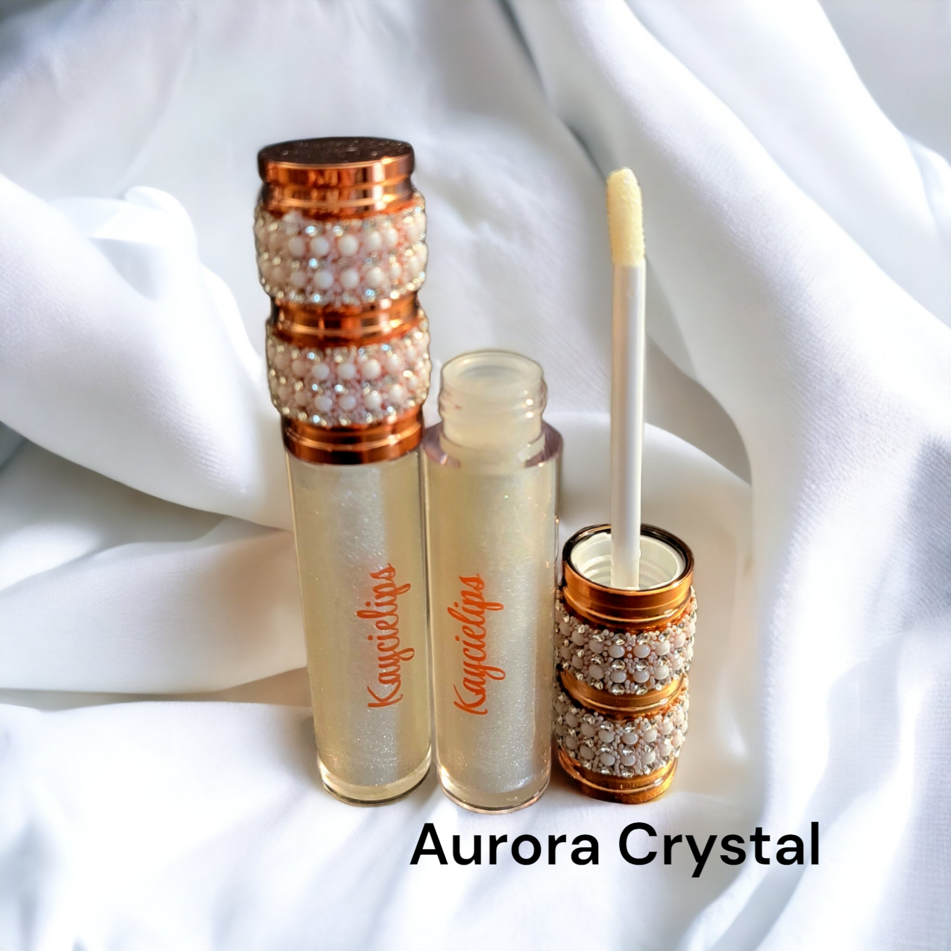 "Aurora Crystal" lip gloss is a magical and whimsical product that adds a shimmery and iridescent finish to your lips, resembling the beauty of the northern lights. It is a great choice for those who prefer a unique and eye-catching makeup look, or who want to add a touch of magical sparkle to their lips.